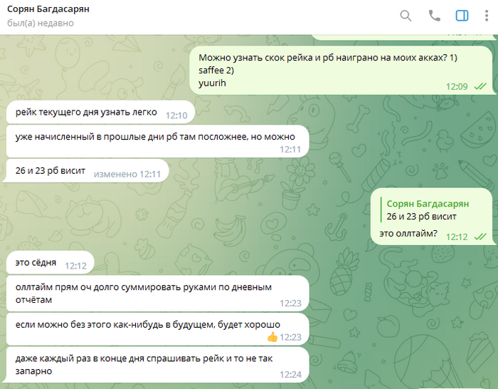 Отыграв пару дней на минимальном лимите, и чудом плюсанув какие-то копейки пре рб - пишу обо всех проблемах, проблемы обещают решить, сроков не ставят. Понять сколько я отыграл рб не дают, такой возможности просто нет/лень считать, впны не работают.