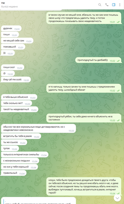 Наш герой почувствовал себя Стефаном, хочет ебальники разрывать в реале)) только одновременно с этим постоянно предлагает ЕМУ удалить тему, и непонятно зачем мне об этом пишет, даже после занесения в чс, уже в конфе.