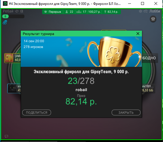 Основная ставка на фрироллы от джипситим,на покердоме ,редстаре и коинпокере,за лидерборд платят неплохо.