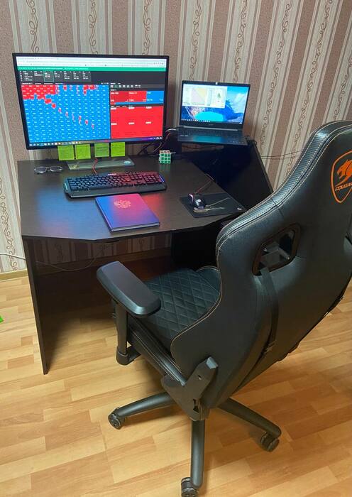 П.С. игрокам лимитов ниже и не только: по опыту считаю что проработка околоигровых моментов очень сильно влияет на винрейт, например комфортное рабочее место дает примерно +2бб на 100😅 мое выглядит примерно так. Монитор 32 дюйма. Меньше меня не устроил. Кресло тоже важно, раньше сидел на стуле из икеи...(теперь бы понять как максимально правильно на этом сидеть, часа через полтора появляется напряжение)