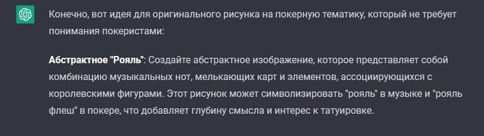 Какая-то сложная задача. Оригинальный рисунок на покерную тематику, без покерной атрибутики, которую поймёт только покерист. Есть хоть один вариант? Вот чё чат предложил. Вроде сойдёт.