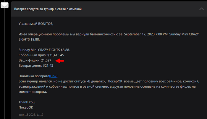 Господа, всем привет. У меня возникло небольшое недопонимание с Pokerok. Сразу скажу суммы небольшие, но хотелось бы разобраться в этом моменте и почему так однозначно отвечают, когда ситуация неоднозначная.