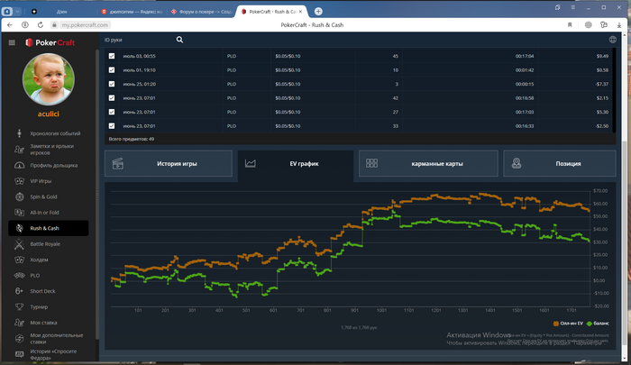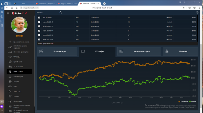 Народ подскажите,кто знает какой рейк на R&C PLO 0,01/0,02.Это мой покер крафт за последние 7 дней.Еще 2 раза попал в призы во фриролле 21 и 24 $.И один раз был свидетелем джекпота 9$.