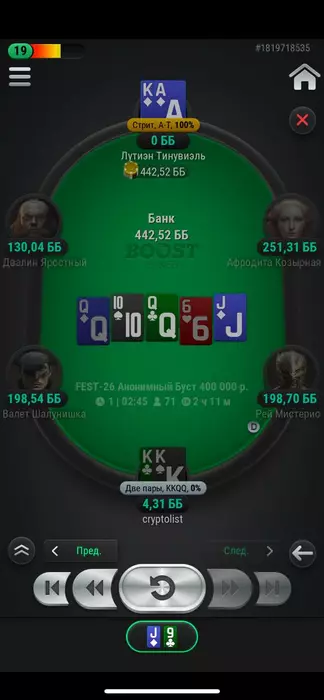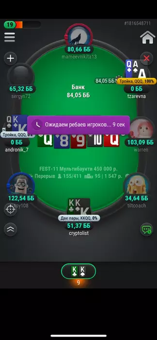 В итоге я просто досидел до призов и вылетел АД < КК. Очень жаль, с таким стеком на бабле, можно было бы хорошо развить успех, но увы.