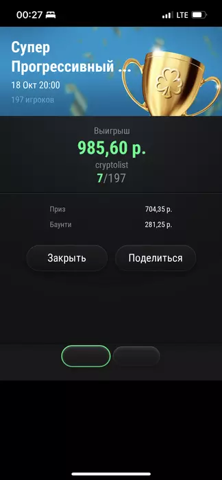 После успешного старта, поверил в себя, думаю, ну точно я на что-то гожусь и пошел играть выше, уже турики не по 250 рублей как основа, а уже за 1к на регулярной основе (БР почти позволяет), да и призовые там куда интереснее, думал я…))