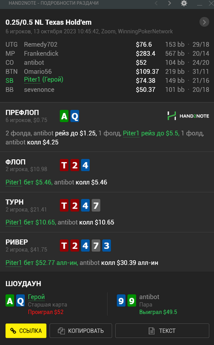 Вот несколько проигранных раздач ,давайте посмотрим насколько все плохо и что можно было сделать иначе,я считаю себя любителем.