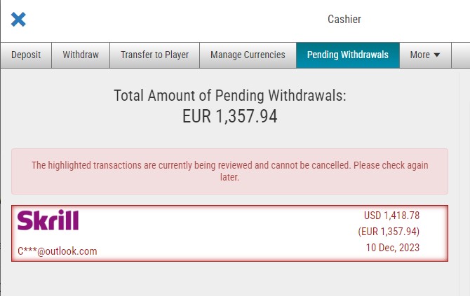 Короче играть не могу, вывести свои средства не могу, сумма небольшая 2.5К, но тут дело принципа, возмущает как вообще возможно такое отношение к клиенту и его деньгам?