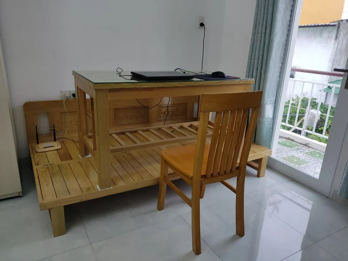 Ну и поучавствую-ка я в конкурсе #сетапGT. Во Вьетнаме очень распространена низкая мебель (однажды я даже видел мягкое офисное кресло, в котором надо было сидеть на корточках). Вот и в моей квартире стол откровенно мельчит. Но если разложить низенький кухонный диванчик и стол поставить на него, то получается отлично! Единственное, нужно будет разобраться с интернет доставкой и сюда ещё монитор прикупить: