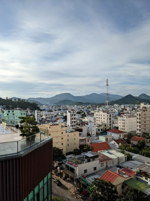 У меня крыша общественная, в одной части стиралка, бельё сушится, а в другой — хорошая такая площадка, и виды отличные. Думаю может купить как-нибудь глиняный мангал вьетнамский и завести традицию неторопливо ужинать там вечерами: жарить какого-нибудь краба, да виды смотреть.
