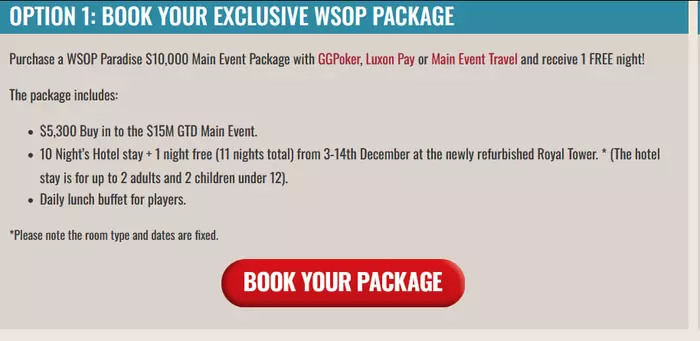 If you cannot attend WSOP Paradise, you will forfeit the hotel package and tournament fee and receive T$5,000.