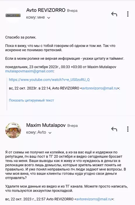 🔴 Ревизорро закрыл все комментарии на ТГ и мои ссылки под его видео на мой Ютуб с опровержением. На почте, по ситуации ответил, что пока все сходится по его мнению. На просьбу удалить из видео мои данные молчит. Все таки думаю тут есть след летней истории, где от моего имени развели человека и он обещал "рассказать блогеру". Такая типа месть, за собственную тупость.