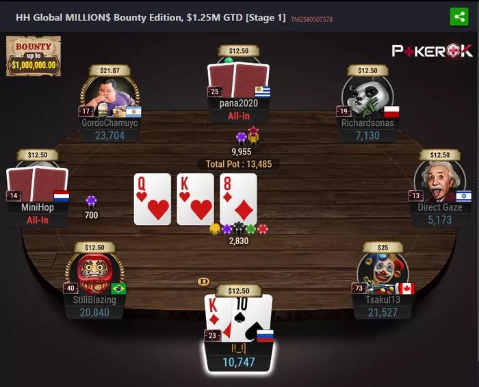 Ранне-средняя стадия, опп из Уругвая неизвестен, почти без призов, оупен 2 из 5 рук.