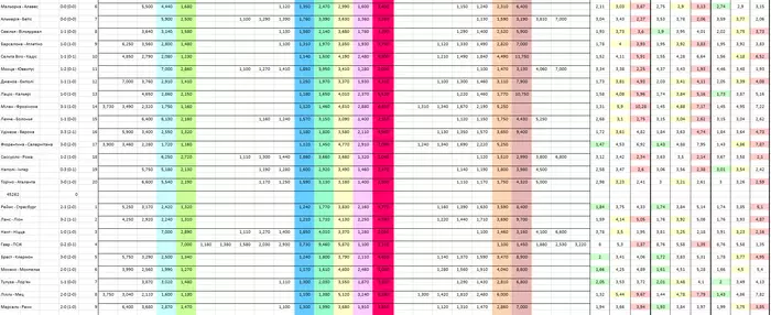 21-31 = кф1-4 / 31-41 = кф2-3 / 41-51 = кф2-4 / 51+ = кф 3-4 (возможно 3-4,6, нужно еще раз подсчитать результаты на макс прибыль.) Так что результаты в прошлых скринах улучшились, я отсеял из всех верхних таблиц в начальном туре все кф от 2, в том числе и плюсовые ничьи, но они будут учтены в нижних таблицах, где берется все с любым кф.