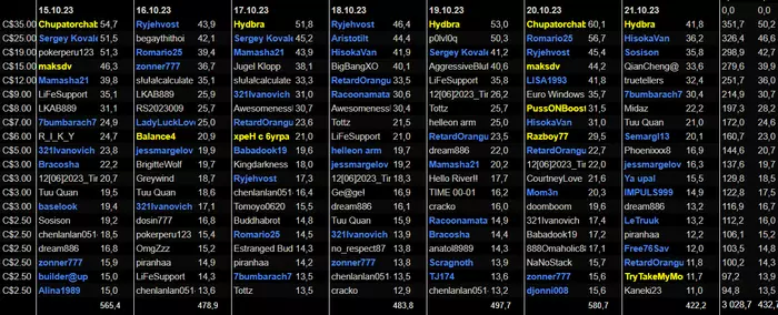 Возможно я реально кукухой поехал и у вас появился местный городской сумасшедший)), так как после анализа лидерборда пл2 увидел там жесткий тимплей среди 4 игроков + игроков поддержки и распил всего микролимитного лидерборда. Уже все готово, а пока немного спойлеров будущей статьи/расследовании в моем дневнике, которую выложу уже завтра). Это лишь гипотеза и скорей всего я просто чего-то не понимаю, так как еще слабо разбираюсь в игре, но ребятки.. я тупо не смог объяснить то что увидел, когда проанализировав 42 дня лидербордов на пл2 лимите среди топ1-20 игроков. Сначала я подумал что они просто в засосе и поделили дни, но чем глубже я забуривался тем очевиднее для меня становилось, что одним распилом дней тут дело не ограничилось...
