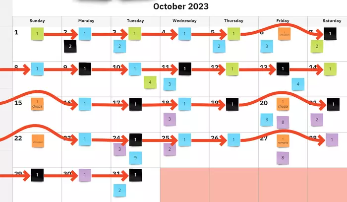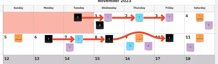 Как можно заметить, линия передачи топ 1 иногда прерывается (оранжевыми стикерами, другими игроками, не входящими в эту "великолепную четверку", например в пятницу и воскресенье ребята частенько отдыхают) Цвета стикеров это главные герои (у каждого свой цвет), цифра на стикере это место в лб на эту дату. Как по мне так очень планомерное распределение без особой конкуренции. Видно как они чётко сменяют друг друга и передают первенство. Причем речь не о какой-то борьбе ожесточенной за топ 1.