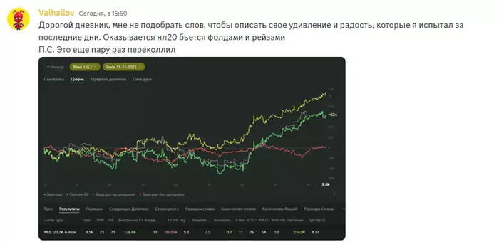 Покатали на PokerBros преимущественно нл100-200 вот с такими результатом.