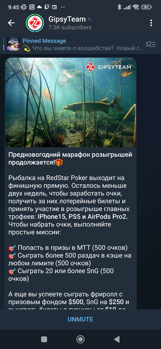 Правила простые: выполняйте задания во всех разновидностях покера, набирайте очки и участвуйте в розыгрышах и фрироллах. 29 декабря для всех участников Рыбалки пройдет лотерея, где разыгрывается iPhone 15 Pro, PS5 и Airpods Pro 2! Все подробности читайте на GipsyTeam.