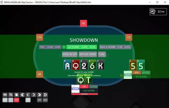 Много контринтуитивных действий для моего мозга,стали мне понятны.Лучше стал чувствовать диапазоны игроков.Но справедливости ради я только в начале своего пути и прокачал лишь малую часть спотов:BUvsBB srp со стороны агрессора,BUvsBB srp со стороны защиты.