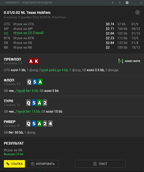 Jeime_Lan, Согласен. У меня бывает такой момент, что я переоцениваю способности оппонентов. Тут, каюсь, оказался недостаточно внимателен. Что решил такое провернуть в оппонента, который просто плевал на то что у меня перевес по диапазону в данном споте.