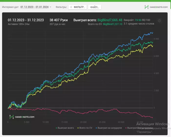 На текущий момент идет 6 месяц с начала моего решения сделать покер основной профессией. За это время вот такие результаты