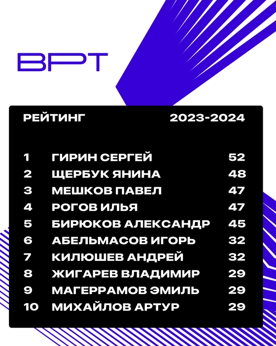 Уже третью серию в 2023 году проходит гонка на звание игрока года BPT! Очень близко друг к другу идут сразу 5 игроков: Гирин Сергей, Щербук Яна, Мешков Павел, Рогов Илья и Александр Бирюков. Из этой пятерки только Александр Бирюков уже забирал титул в прошлом году. Более того... возможно, в этом году, впервые в истории БПТ, в этой борьбе победит девушка. 😊 Впереди у нас ещё 2 серии (январь и май), где можно заработать рейтинговые баллы и победить!