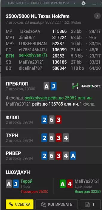 На момент этой раздачи в турнире 49 человек, в призы попадают 40 человек