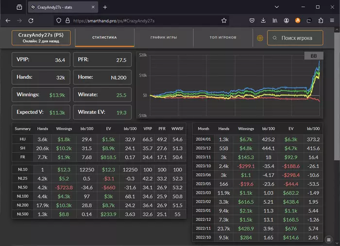 CAP+обычные столы трекаются смартхендом как один лимит и если суммировать руки, то все сходится, но я не играл нл100 и нл200( кроме зума), а в смартхенде они есть
