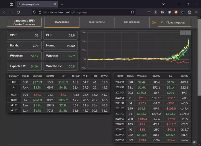 Подскажите, пожалуйста, можно ли как-то матеметически высчитать ожидаемый винрейт чела с впипом 50%, чтобы закинуть в калькулятор диспы и прикинуть может ли он в принципе играть с винрейтом под 50бб на несколько тысяч рук?