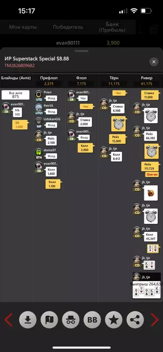 b1ack1337, 3бет на флопе, но тут ты обречен был проиграть, потому что по терну вы бы поехали олин в любом случае. Но лучше трибетить такие флопы, добирать сразу, потому что будет гораздо больше ситуаций когда он ошибется и ему не доедет