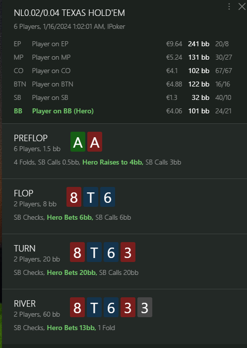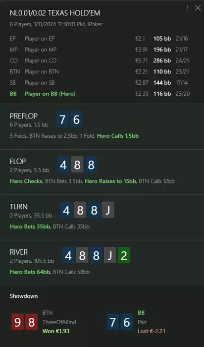 Хотел покатать много в выходные(в моей голове это ~хотя бы 10к раздач). Но как и всегда решил отдохнуть, проводя время за распитием алкогольных напитков. Это были здравые выходные. Сегодня продолжаю покорять дальше замечательную ступень к становлению регом нл4. С новым годом всех )