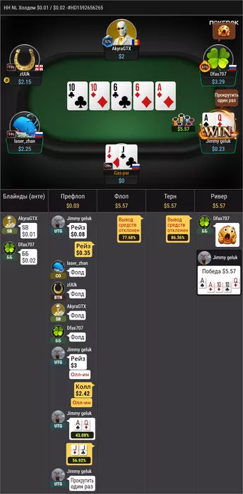 На втором я не ставил последнюю ставку, было подозрение что у него АК против моей АQ