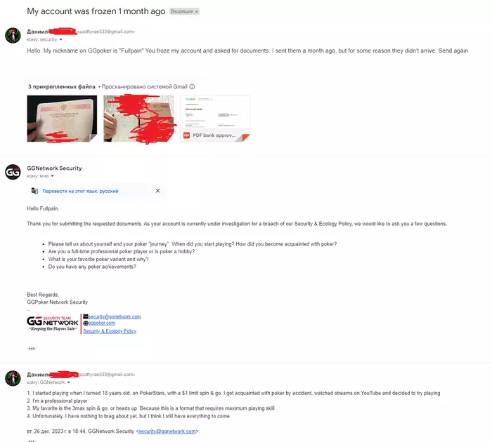 Я в этот же день ответил на письмо с требованием предоставить необходимые документы, отправил, оказалось что служба безопасности не получила мое письмо т.к я отправлял его с маил ру, узнал это через месяц, в этот раз отправил с Gmail и они сразу все получили.