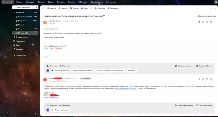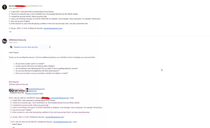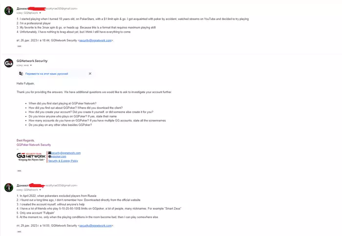 Ниже прикрепляю всю историю переписки со службой безопасности