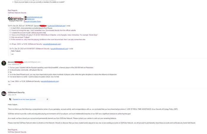 Было принято решение заблокировать мой аккаунта за REAL TIME ASSISTANCE (RTA) проще говоря за подсказчик, с возможностью вывести деньги. Для меня это стало просто шоком, я был уверен что сейчас получу разморозку т.к мне скрывать нечего, я никогда не пользовался чем либо запрещенным, я никогда не открывал чарты во время игры, исключительно после закрытия клиента и всегда был в этом плане принципиальным и щепетильным. Еще более странно что если рум считает что я мошенник, то почему позволяют вывести деньги? Сложилось впечатление, что я попался работнику службы безопасности который не особо был в настроении и не хотел разбираться в моем случае, решил просто поспешно закрыть мне аккаунт. Для меня вопрос бана в каком либо руме очень серьезен, на такое сложно закрыть глаза и идти дальше.