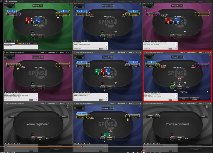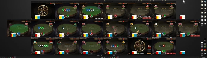 Я 95% времени играл в 12 столов, иногда подключал 20 столов для защиты лидерборда, вот прикрепляю скрин как могла выглядеть моя сессия на двух мониторах в 20 столов