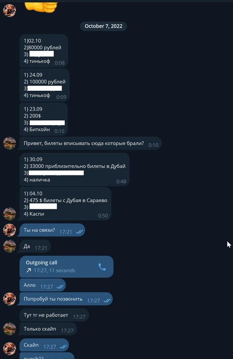 Достаточно неприятно комментировать весь этот бред, но один раз, наверное, придётся. Твоего конфликта с Алекссем и периода переезда в Черногорию я касаться не буду, так как это формально не касается фонда, думаю Алексей придёт прокомментировать всё это. Хочу отметить, что несмотря на твой "инцидент" с Алексеем, который, видимо, нанёс тебе душевную травму (о которой мы, кстати, не знали до событий последних дней), ты не ушёл из фонда и мы тебя не выгнали. Наоборот, уже после этих событий мы одолжили тебе основную часть денег. Уже после этого ты за наш счёт слетал с супругой в Аргентину и вы благополучно родили там ребёнка. Уже после этого мы взяли тебя на работу преподавателем. На этом скрине даты, когда ты просил и получал деньги в долг (зеленые - возврат).