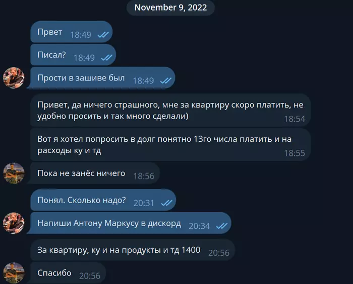 После чего я просто с ним никак не контактировал, я разделил личное и работу, никак ему не усложнял жизнь в ФиатЛаб и т.д. Как вы уже знаете, он дальше просил деньги в долг и получал их, преподавал у нас.