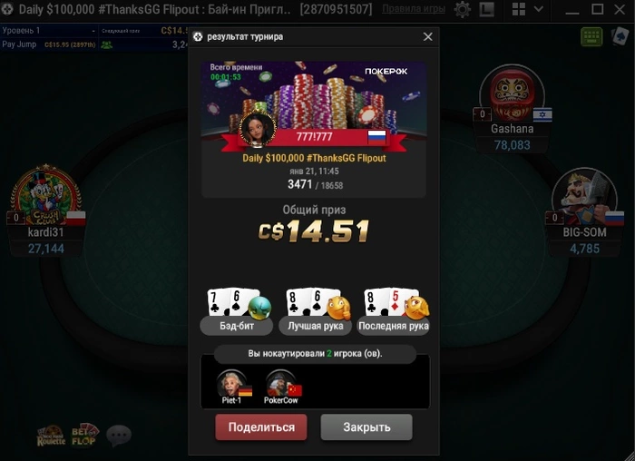 После закрытия ПС не играл и с нового года плюс минус вернулся на ГГ, сделал минимальный депозит в 10$ и катаю нл2 и спины 3 max по 0.25 , иногда подкидываю мтт до 2$