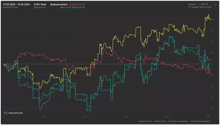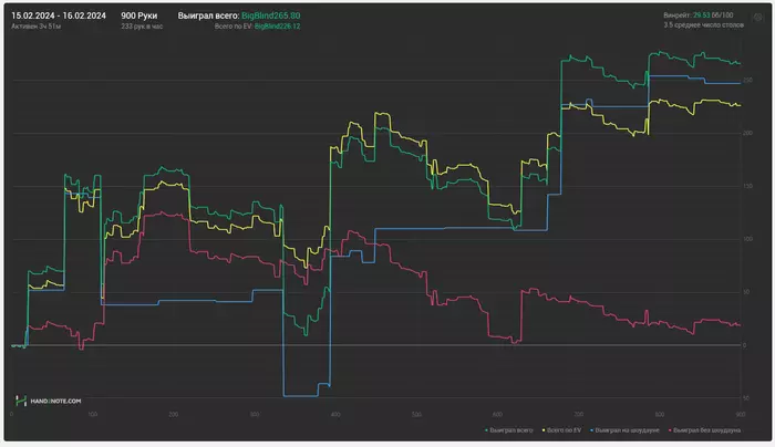 Romana88 @ 01.02.24Удачи! Чувствуется серьезный подход. Желаю не выгореть в таком режиме) Сам пробовал совмещать работу и покер - знаю, что это такое)