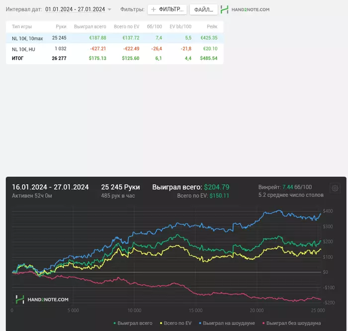 Сьогодні трохи не складалось,дуже було багато кулерів в не мою сторону,тільки сет в сет в 100 +бб 2 рази було ,але і гравців любителів було море,що і якось компенсувало мені,так би була сумна сесія,завтра переходжу на нл 20,надіюсь там рейк не буде такий божевільний,інакше можливо буду розглядати перехід на старзи