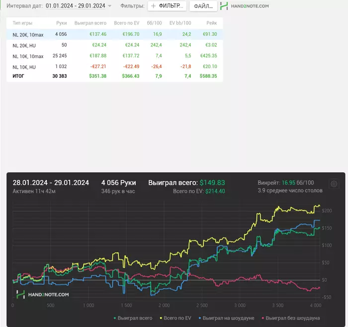 Сьогодні мало спав,тож зараз важко оцінити,сьогоднішню ігру і якість рішень,але старався селектити і багато не грати,трохи грав через старт столів,не думав що це буде актуально на цьому ліміті,але впринципі получав за стіл цікавих персон,а не іхні огризки,як деколи буває,але робив це скоріш через недосип і лінь