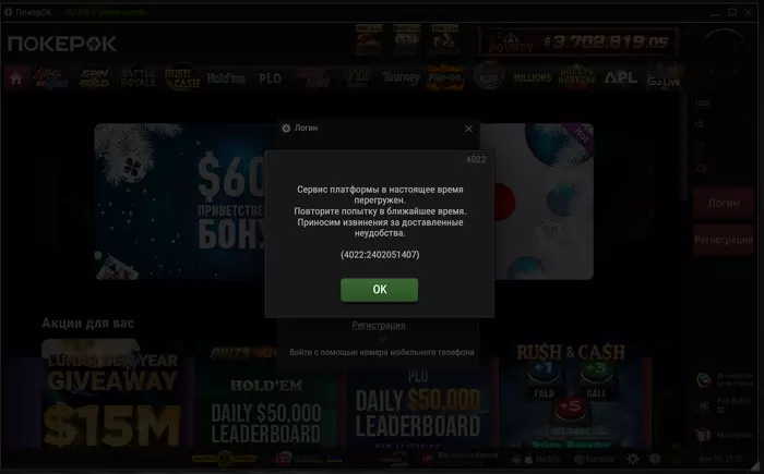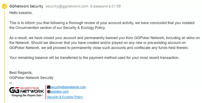 Играл турнир за 5.40$, в перерыве вышел из клиента пересесть за другой компьютер, но из-за технических причин со стороны рума не смог зайти в клиент. Когда через час смог, турнир уже кончился. Обратился в саппорт, что бы вернули байин, но в итоге получил вечный бан.