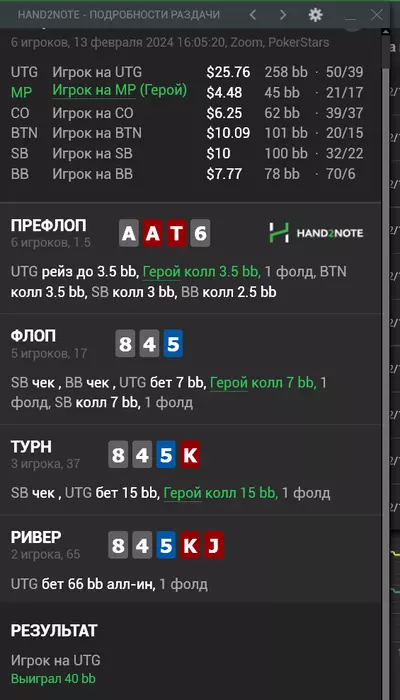 Знатно похавал. Не хочу доигрывать сегодня. Красная сегодня в таком плачевном состоянии не из-за нитовости, просто так складывалось. Много раздач такого типа, где без шансов приходится оставлять банк (колл АА сделал из-за чела на CO с 3-бетом 60%).