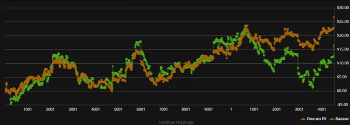 В конце видно, как красная становиться прямой. Там я уже начал играть по новой стратегии.