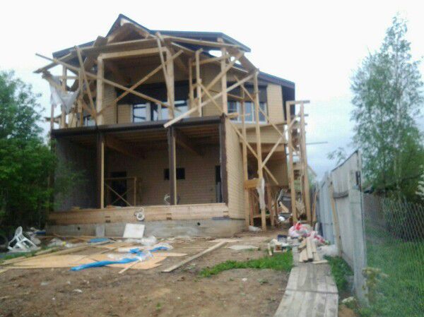 Вот этот дом построил вообще один за 2 месяца,перед отьездом за час в Москву нашел парня,который просто доски подавал,он на крыльце на фото