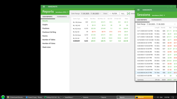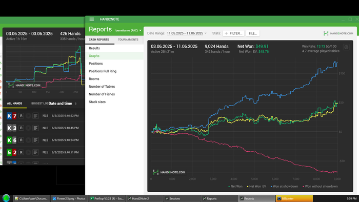 Вчера заметил проявление удовольствия от разбора рук за ужином, принято решение сменить акцент на суть игры - получение наслаждения от жизни по банкроллу)