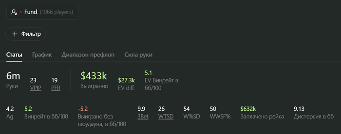 Игроки приложений пока отстают, но и нужно понимать, что мы берем на обучение и бэкинг нулевых игроков NL10-20 и на рост каждого уходит 3-4 месяца до приемлемого винрейта + большой процент игры на фулл анонимных столах без персонального эксплойта: