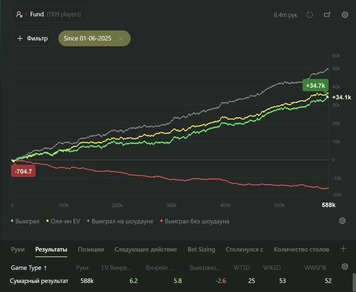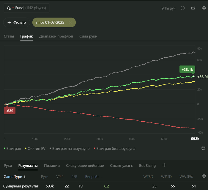 Можете нас поздравить - ученики играющие евро румы пробили 7bb/100 тотал результат при селекте в 33% с фишами 55%+ впип:
