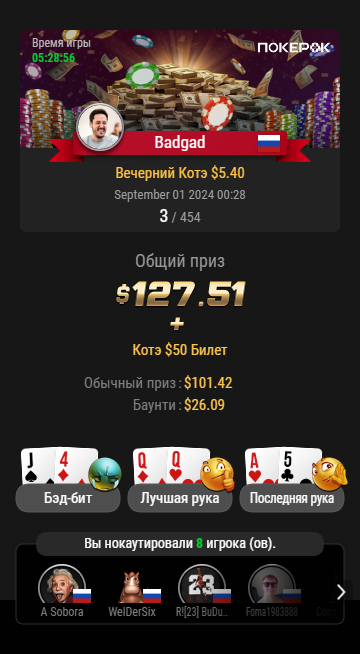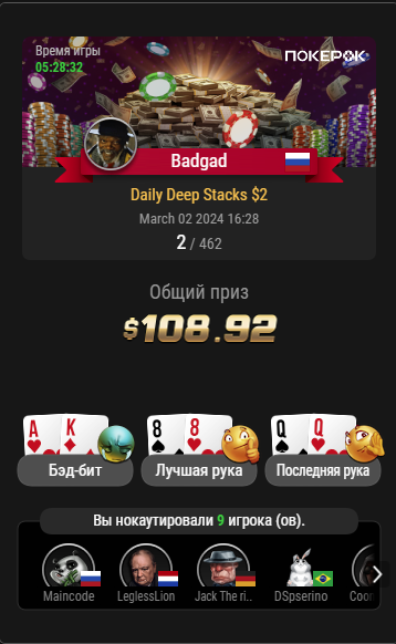 После того как Покерстарс и Пати ушли, перешел на Покерок. Играл здесь почти всё, и спины, и AOF, и шортдек, и батл рояли. А МТТ как то обходил стороной.