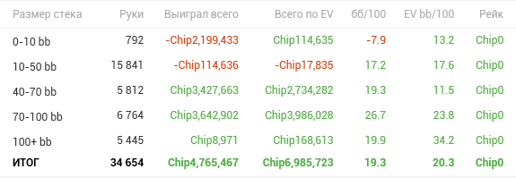 Отличные винрейты! Я в МТТ с 2010, начинал с 0,25$ мтснг на Старзах и с бесплатного полтинника от Стратеджи. Тоже все года сам играл микролимиты, плюсовал от года в год 2-5К в год. Как прибавка к основной работе устраивало. Также сам особо и не работал над игрой. Но год назад и я сдался и пошел в фонд, сейчас точно не жалею об этом. Но у меня таких винрейтов никогда не было, ...да и сейчас в фонде тоже нет... А так успехов! Подпишусь , послежу с интересом .